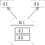 d2 into class mi, class mi contains one subobject of